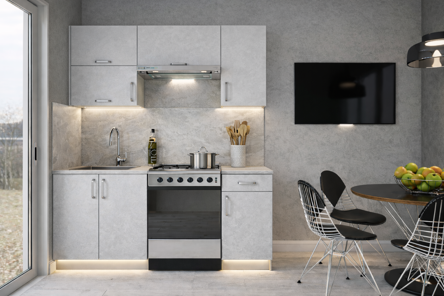 Visi bildēs redzamie aksesuāri, piemēram, sadzīves tehnika, sienas paneļi, tvaika nosūcēji, dekoratīvie priekšmeti NETIEK iekļauti komplektā.