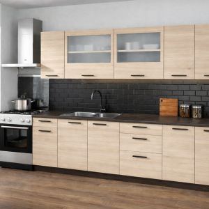 Virtuves mēbeļu kolekcija ir klasiska virtuves kolekcija. Tā sastāv no četriem komplektiem (180 cm, 220 cm, 240 cm un 260 cm) un 19 komplektējamiem virtuves skapīšiem. Tas ļaus jums pielāgot komplektu savām personiskajām vajadzībām un vēlmēm. Virtuves skapīši ir funkcionāli un izgatavoti no kvalitatīva LKSP. Lieliska kvalitāte par labāko cenu!