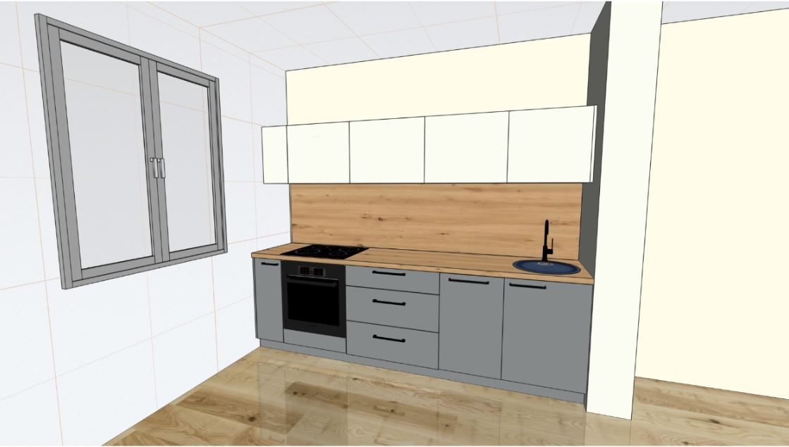 Komplekta fasādes un korpusa krāsas, galda virsmu kā arī rokturus skapīšiem Jūs varat izvēlēties savai gaumei atbilstošus.
